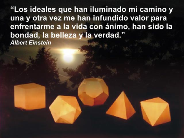 Los ideales que han iluminado… Posted on octubre 16, 2006abril 30, 2020 by M.Angel Los ideales que han iluminado mi camino y una y otra vez me han infundido valor para enfrentarme a la vida con ánimo, han sido la bondad, la belleza y la verdad. (Albert Einstein) Entradas similares: La verdad Cuando la luz de la belleza… Pensamientos para una educación integral Virtud y belleza
