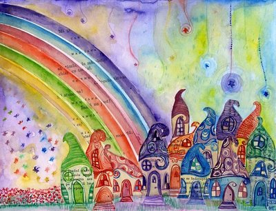 Sonámbulos al volante, mientras atravesábamos la M-40, (la gran autopista de circunvalación), o cualquier otra, todos dirigiéndonos hacia el norte, como en todas partes del mundo ocurre por la mañana, un enorrrrrrrrrrrrrrrme arco iris mostraba absolutamente todos sus colores con gran nitidez, cruzando la ciudad de lado a lado.