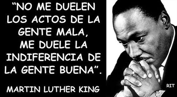 Indiferencia Posted on septiembre 24, 2014abril 30, 2020 by Otros Publicado en https://www.facebook.com/nuevaacropolisvigo No me duelen los actos de la gente mala, me duele la indiferencia de la gente buena. (Martin Luther King) Entradas similares: La indiferencia Aunque el mundo se acabe Los indignados que mejoraron el mundo Dolor